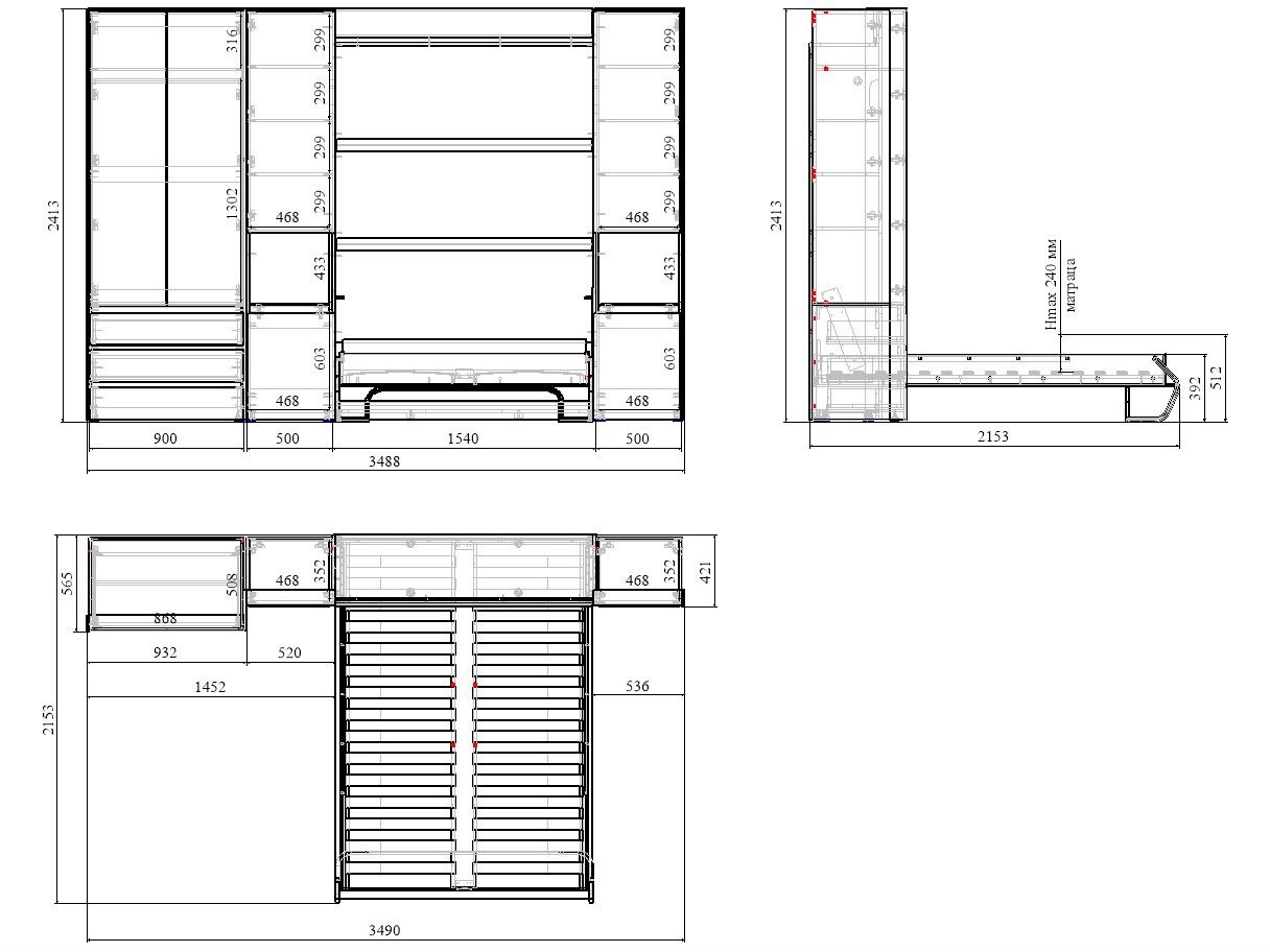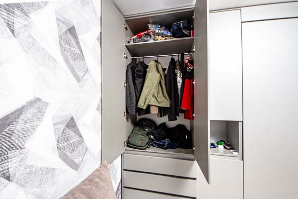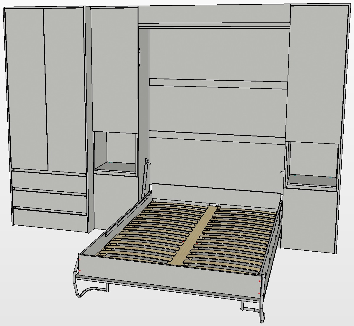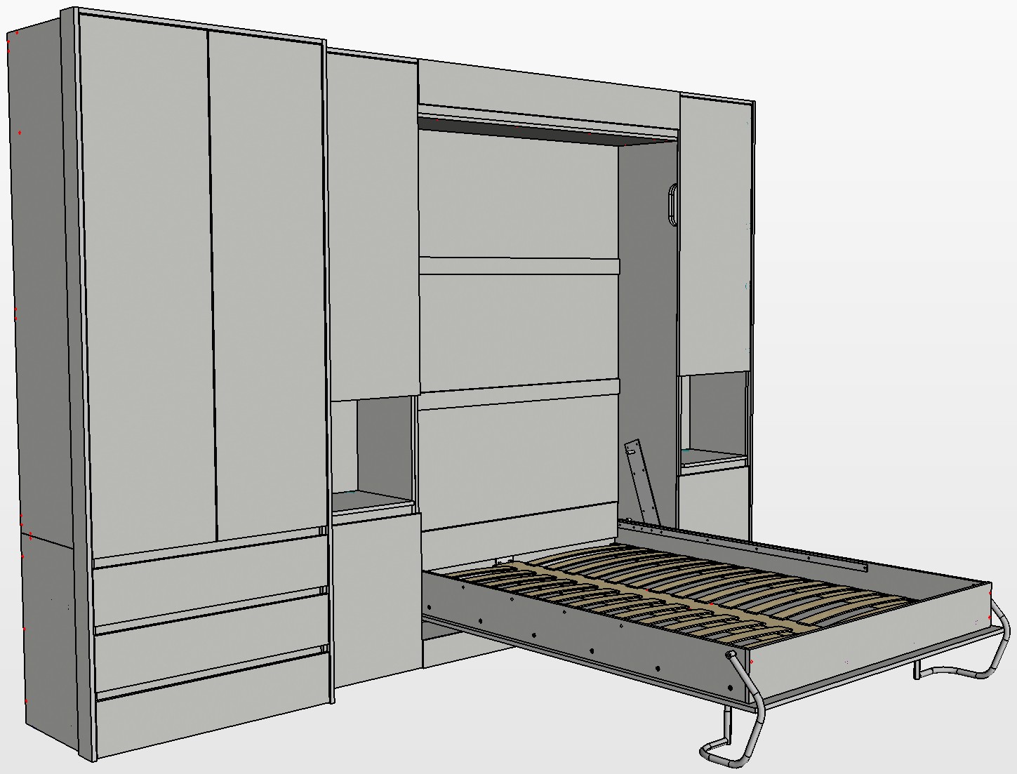 В однокомнатной квартире необходимо было разместить кровать, диван и места для хранения. Угловой диван в комнате уже был, но клиенты спать на нем не хотели, а ставить в гостиной кровать не имело смысла, потому что в комнате не осталось бы свободного места. Поэтому двухспальная шкаф-кровать трансформер и шкафы для хранения — это было единственное решение для однокомнатной, многофункциональной квартиры. Цвет мебели подобрали под интерьер.